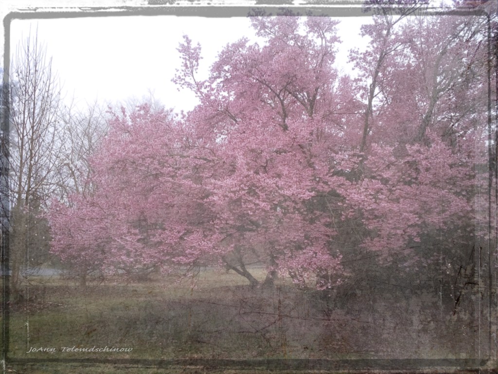 I was lucky enough to be at Rutgers Gardens when the cherry trees were blooming. This tree, with its masses of colored flowers, seemed magical in the dim light. I tried to capture its dreamlike beauty.